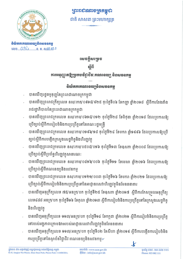 获得柬埔寨注册会计师和审计师协会 (KICPAA) 的审计会员资格